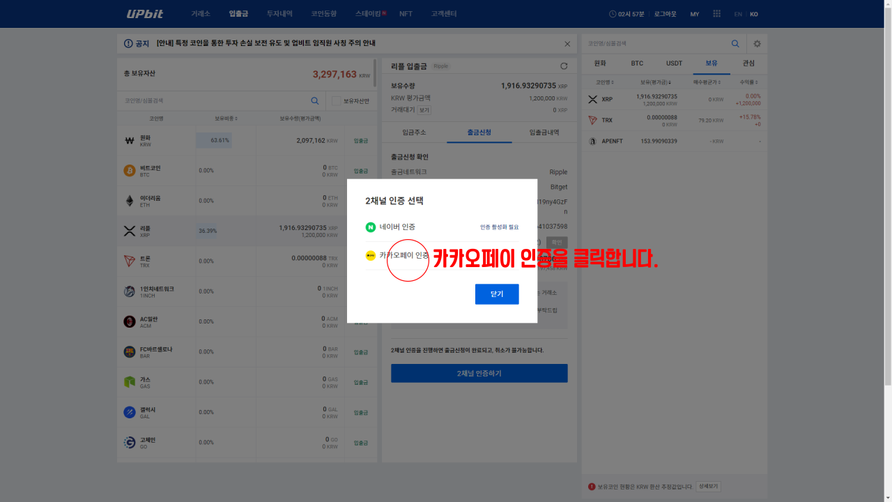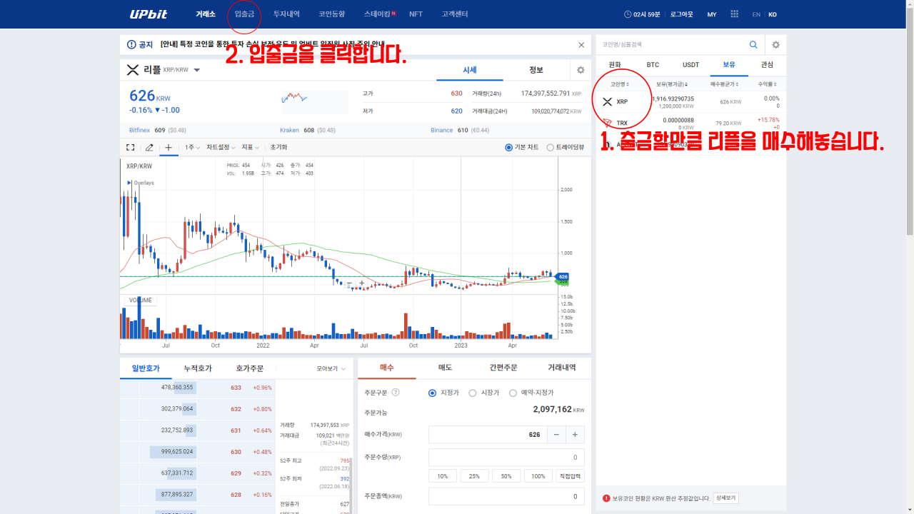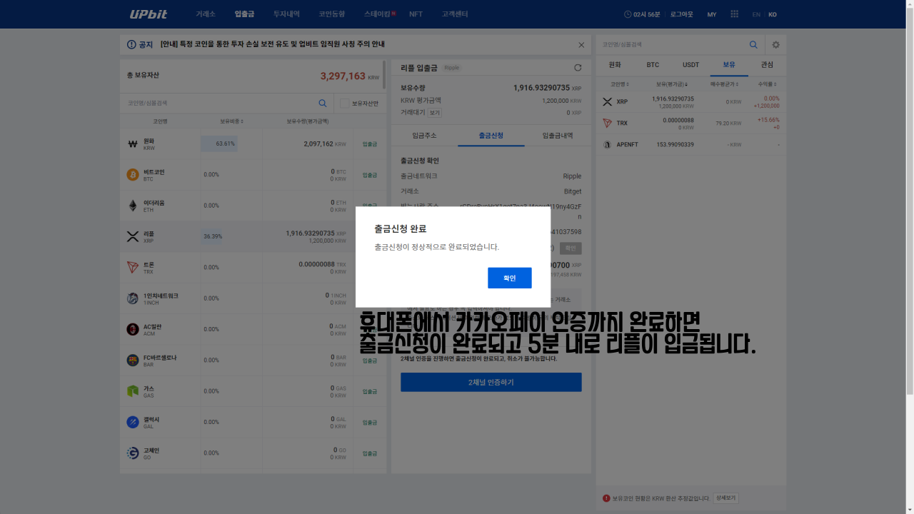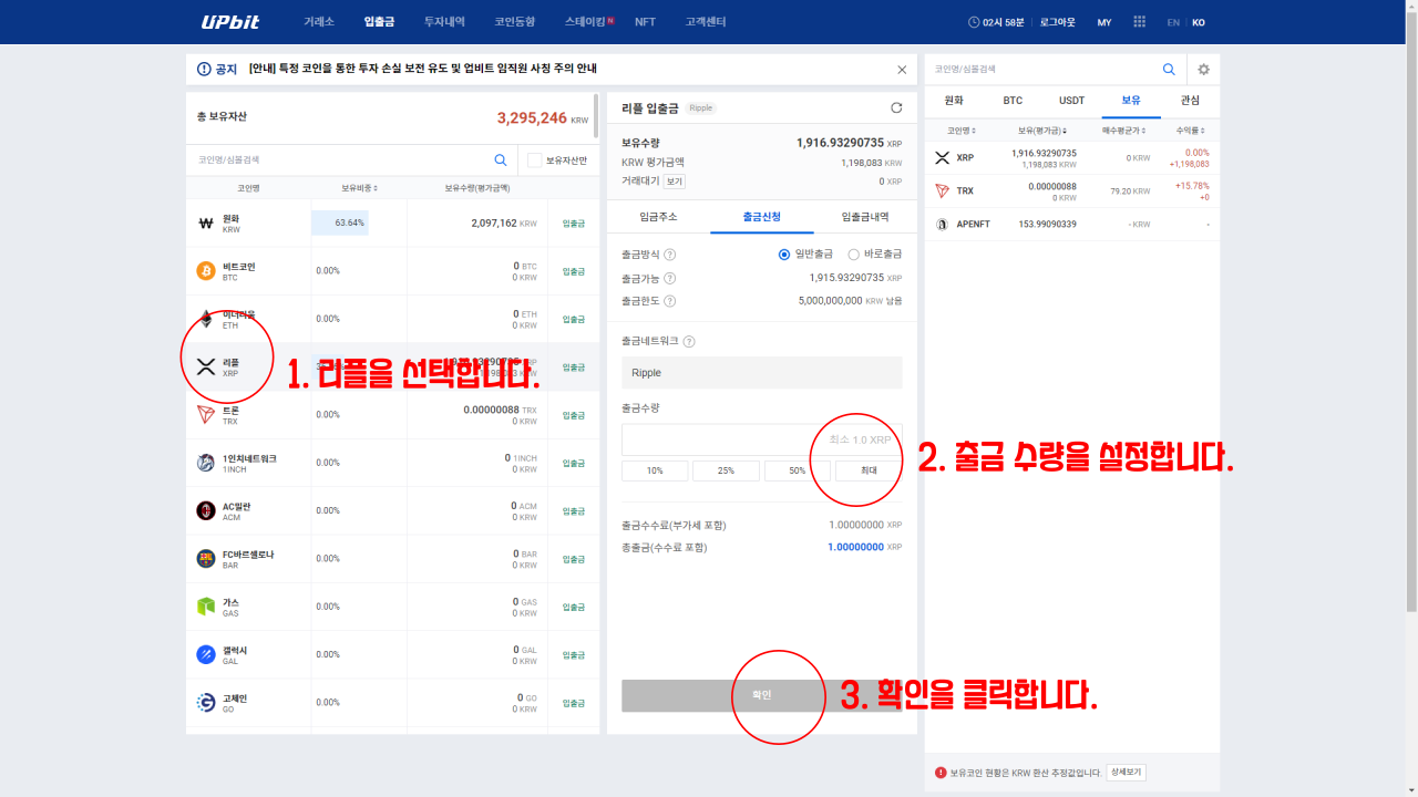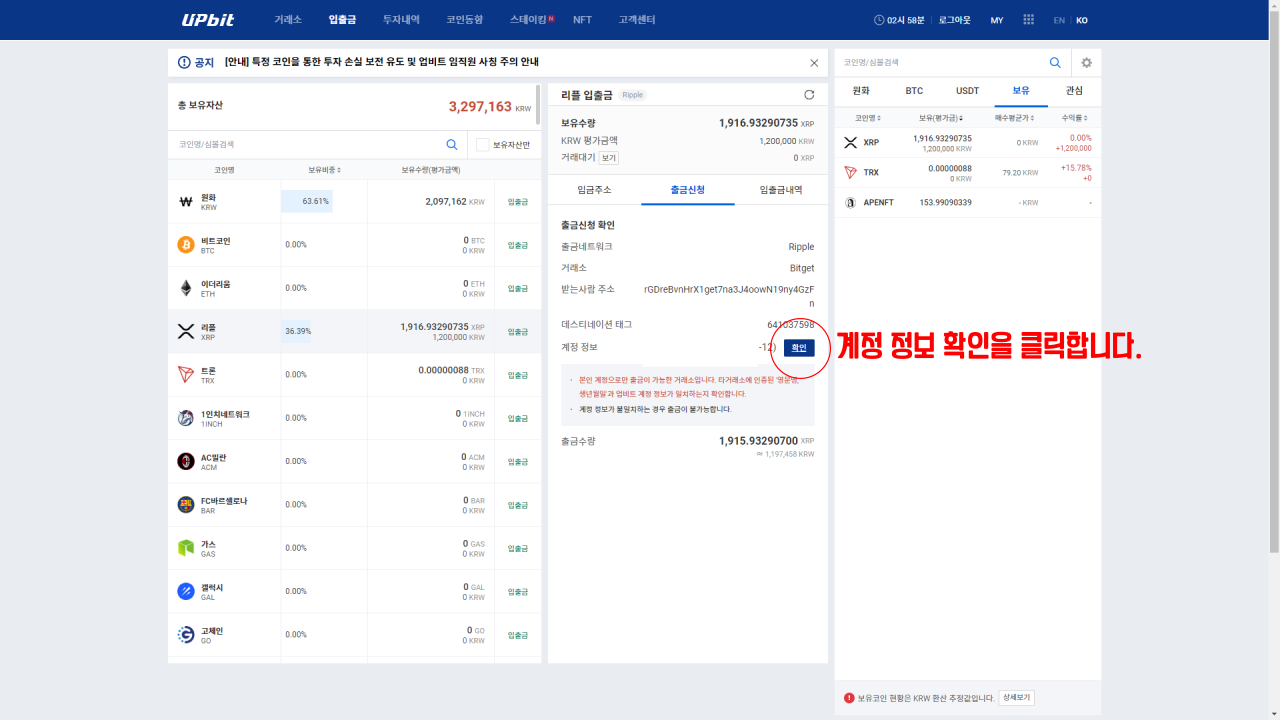 2. 업비트에서 리플 출금하기