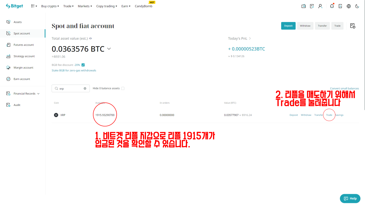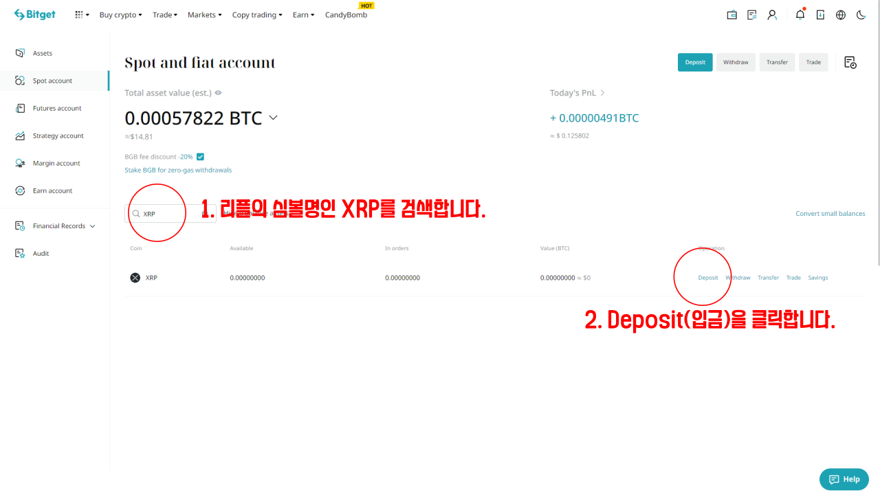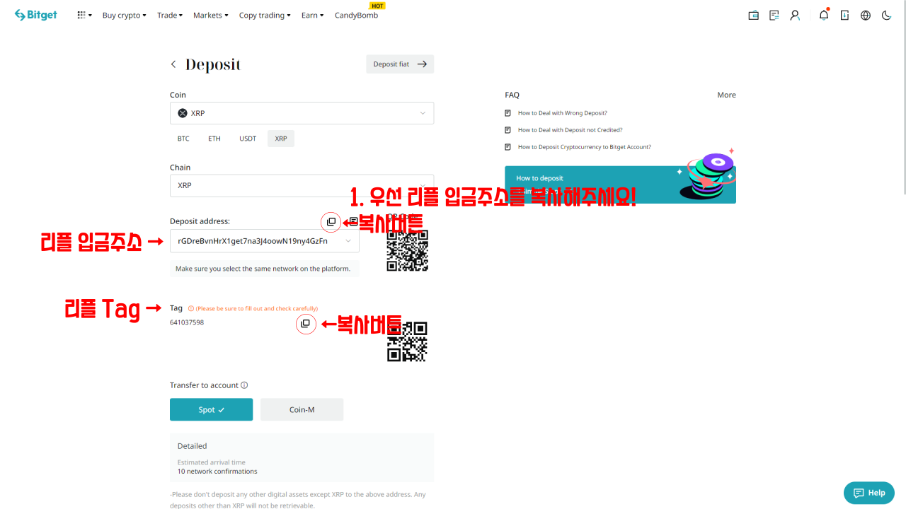 1. 내 비트겟 계정의 리플 입금 주소 확인하기