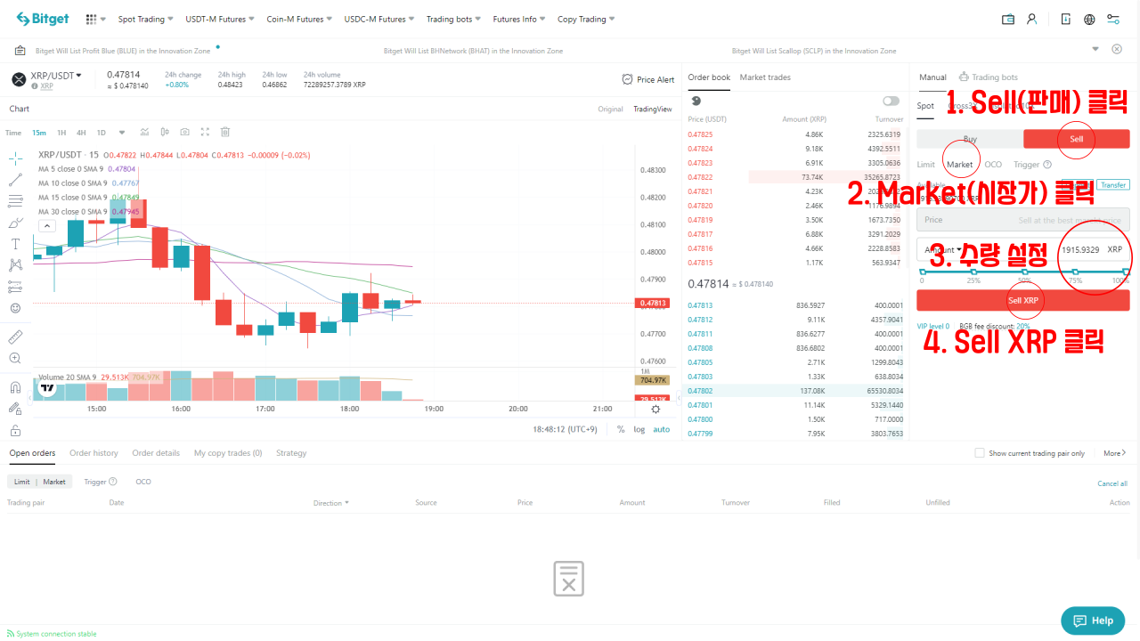 수량을 설정한 뒤에 Sell XRP를 클릭하여 리플을 매도합니다.